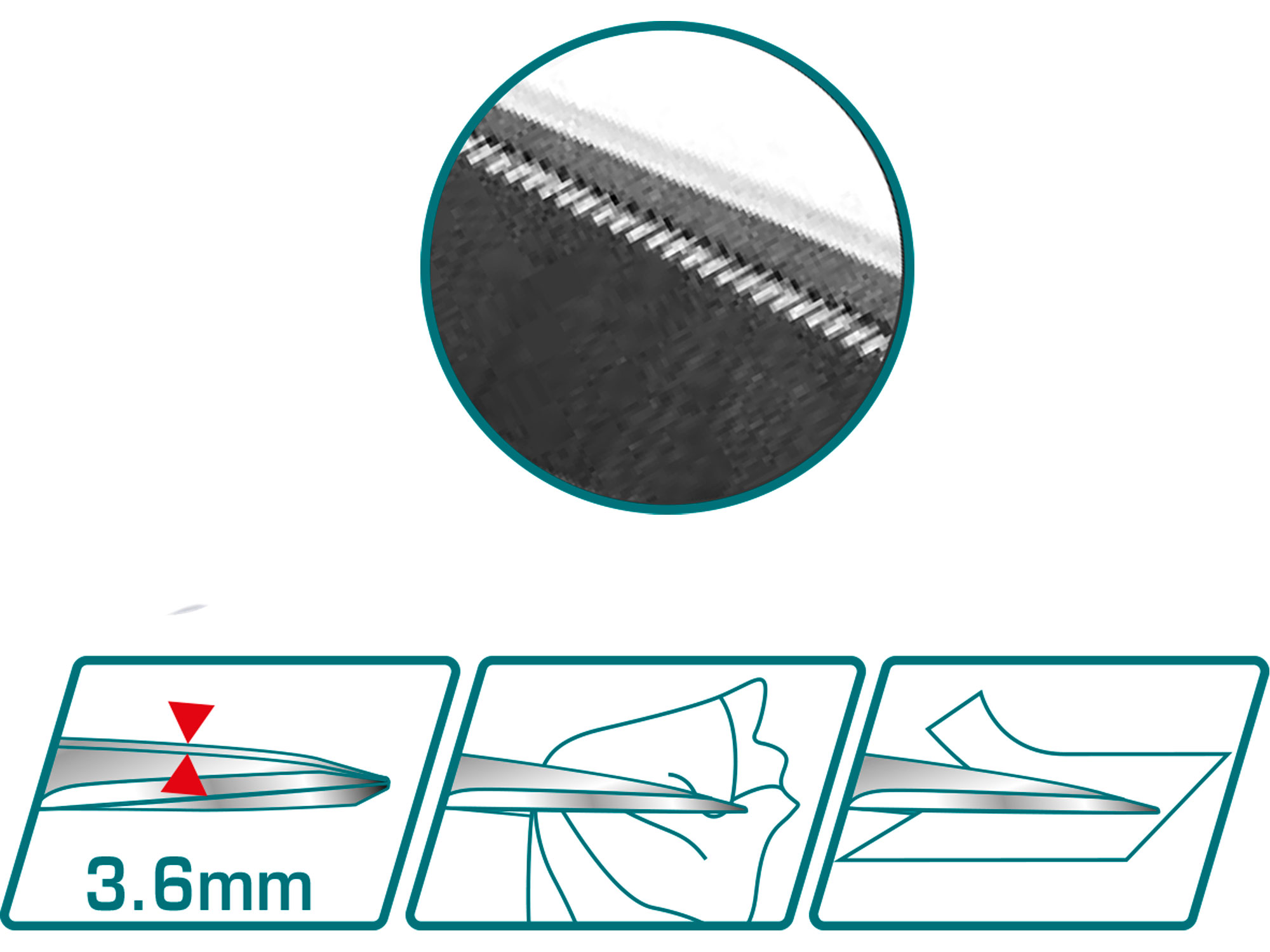 Le design unique du ressort permet une manipulation facile et sans effort, tandis que le design ergonomique optimise la poignée et assure une prise en main confortable et sûre. La poignée est renforcée sur toute sa longueur par de l'acier inoxydable, ce qui rend les ciseaux encore plus robustes et résistants.