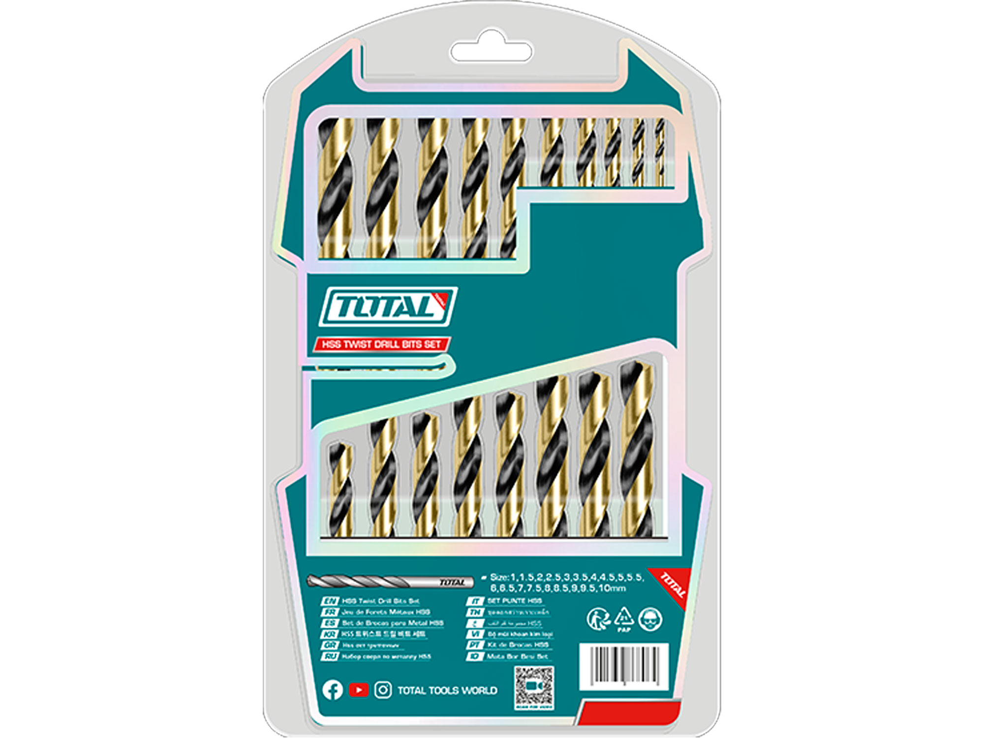 Forets pour métal, HSS, jeu de 19 pièces