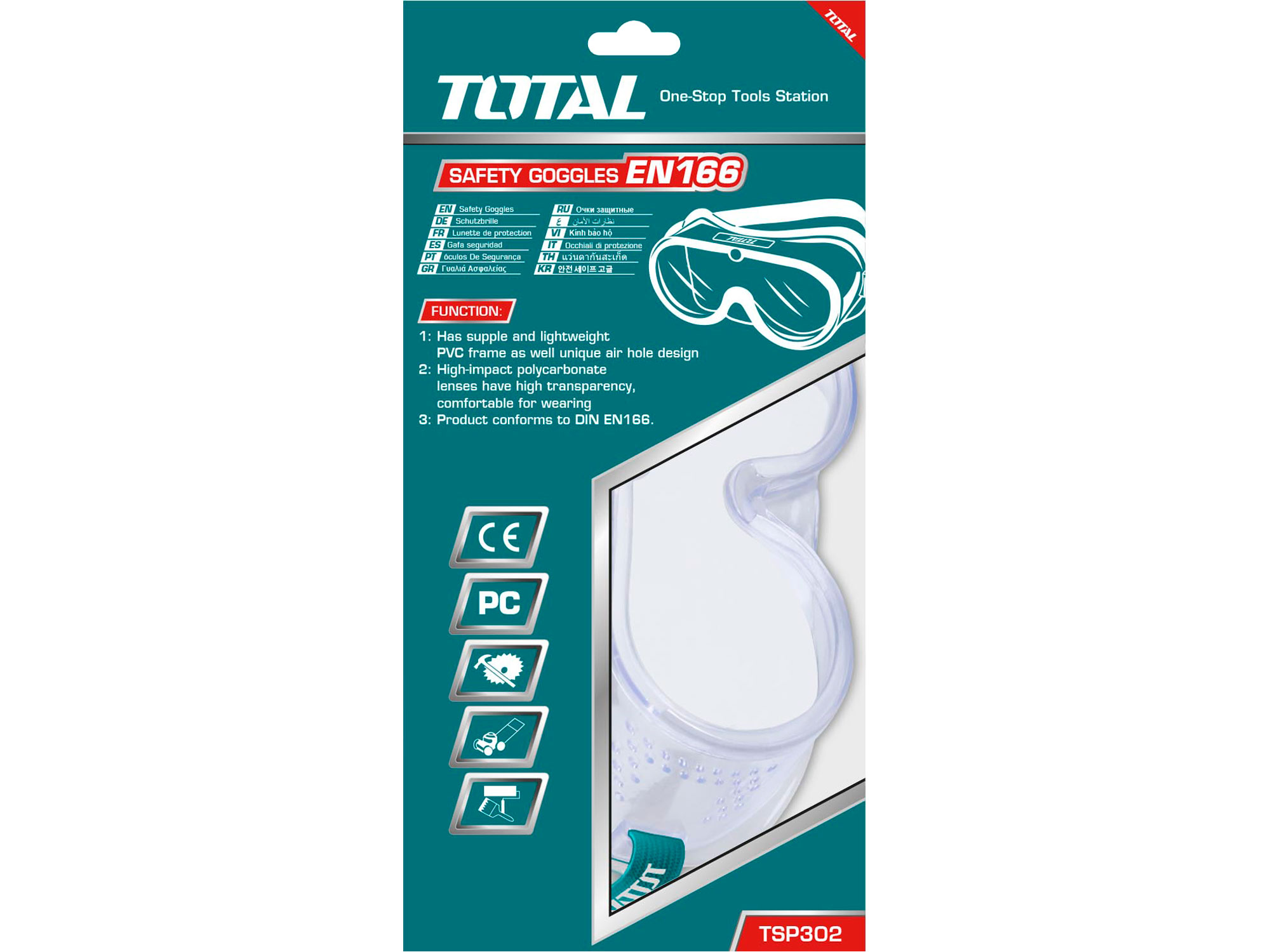 La monture flexible en PVC assure un confort de port agréable et s'adapte parfaitement à toutes les formes de visage. Les verres durs en polycarbonate sont résistants aux rayures et aux chocs afin de protéger vos yeux des liquides, de la poussière et des agressions mécaniques. Ils offrent également une protection optimale en cas de fort ensoleillement grâce à la protection UV.
