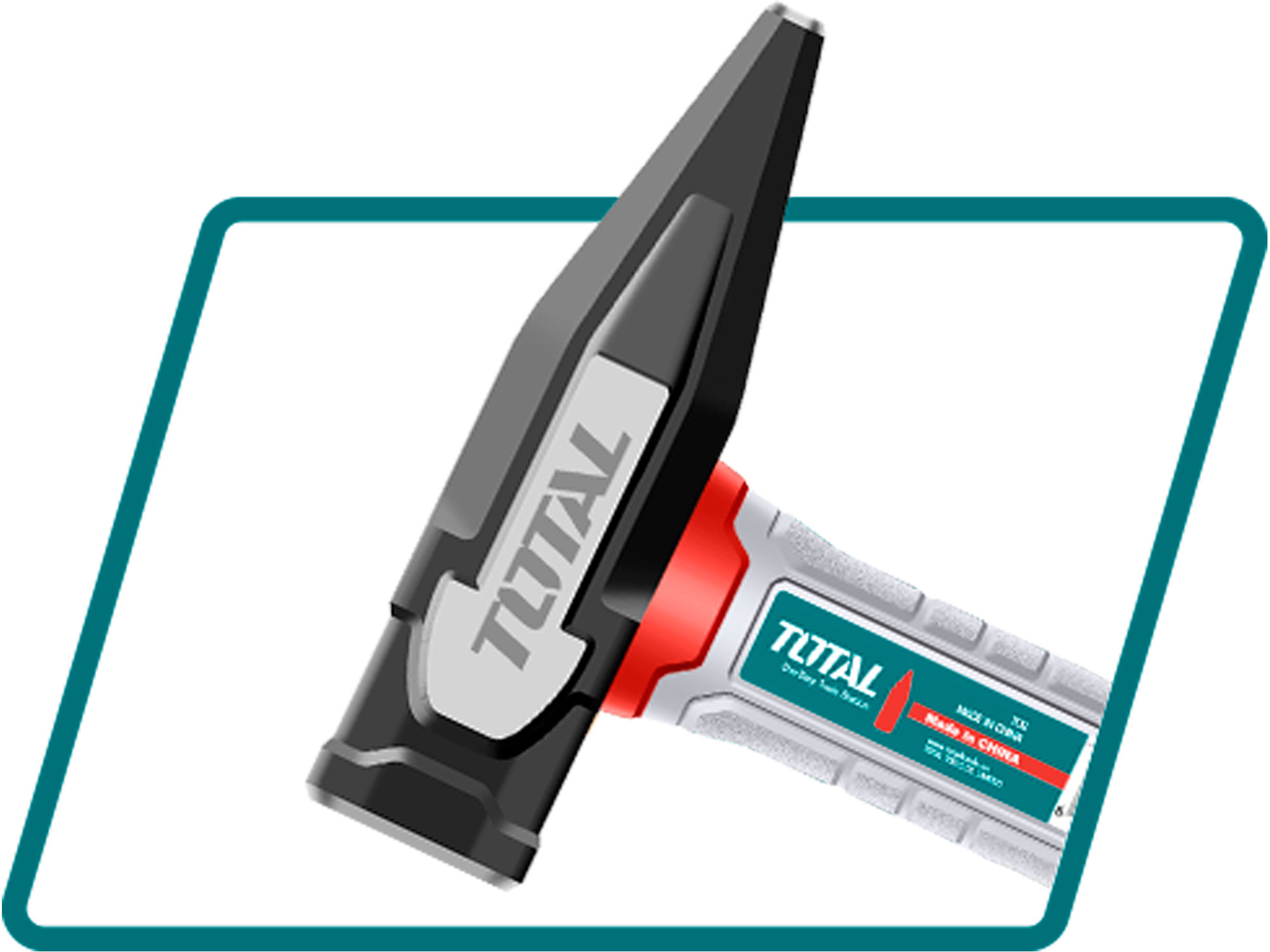 Tête de marteau forgée améliorée. Traitement thermique, acier au carbone 45#. Poignée solide en fibre de verre tricolore pour une prise en main confortable.