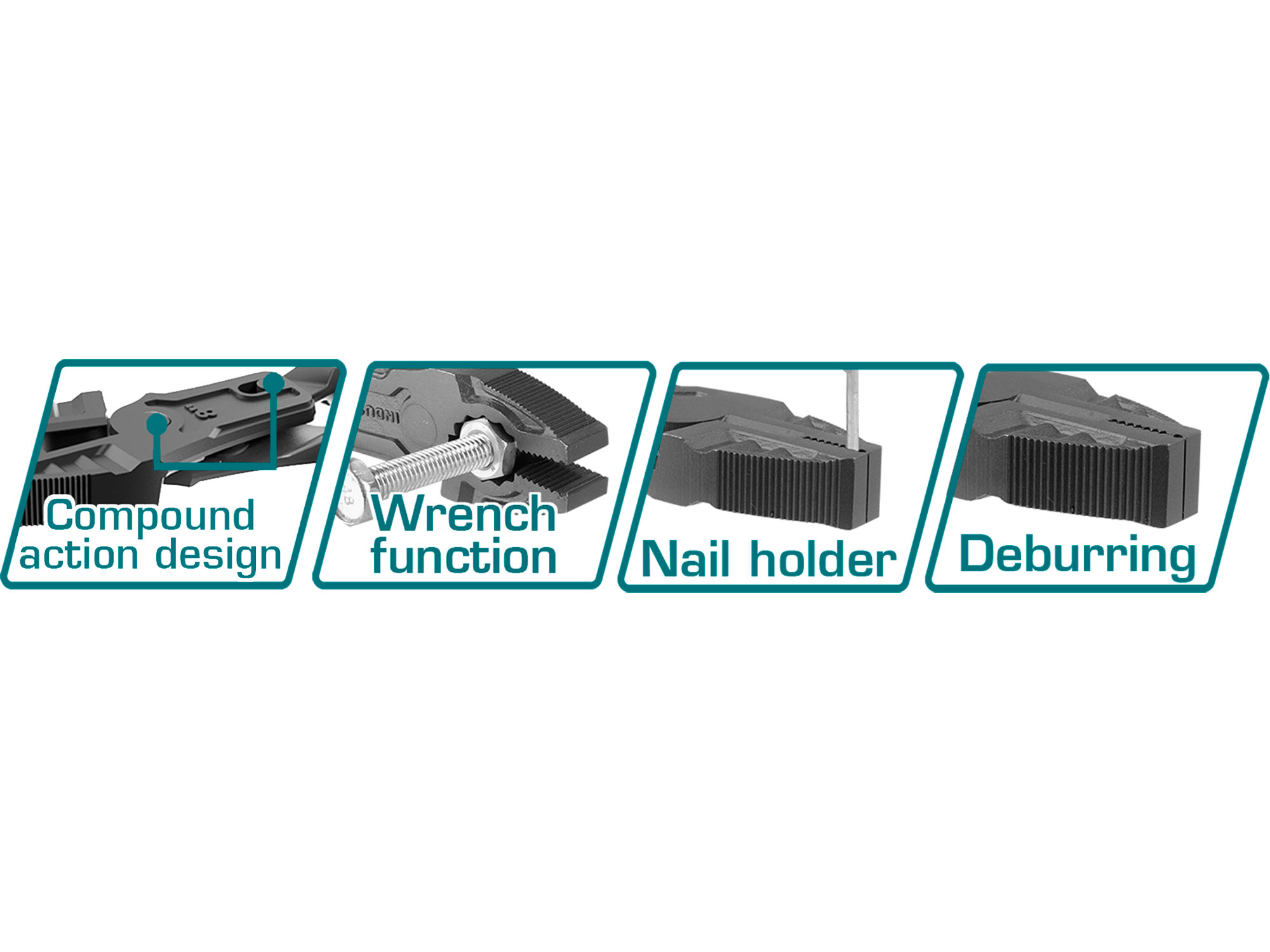 En outre, cette pince offre une fonction de porte-clou, une fonction de clé et une fonction d'ébarbage. Cela en fait un outil polyvalent, adapté à une multitude de tâches.