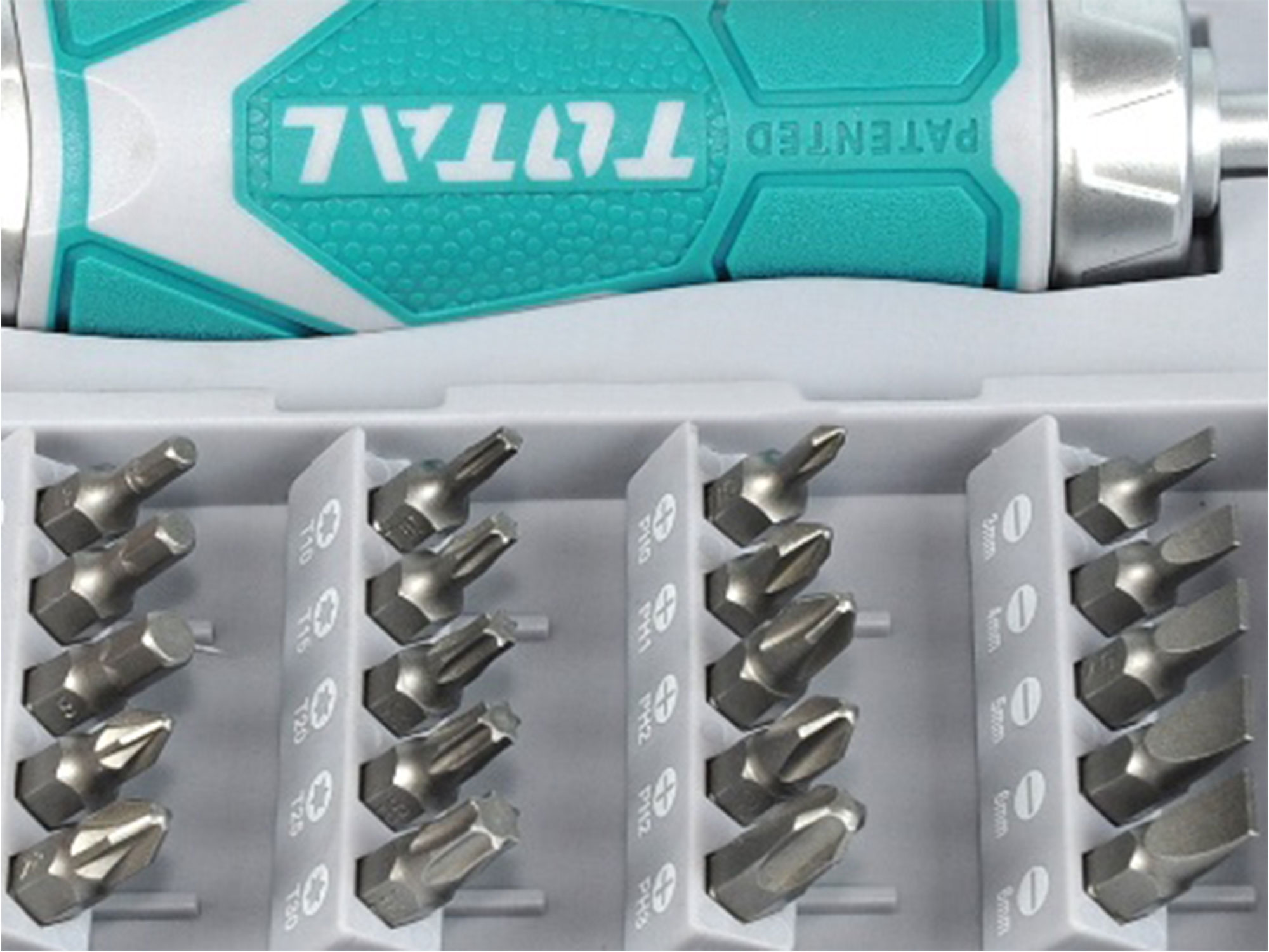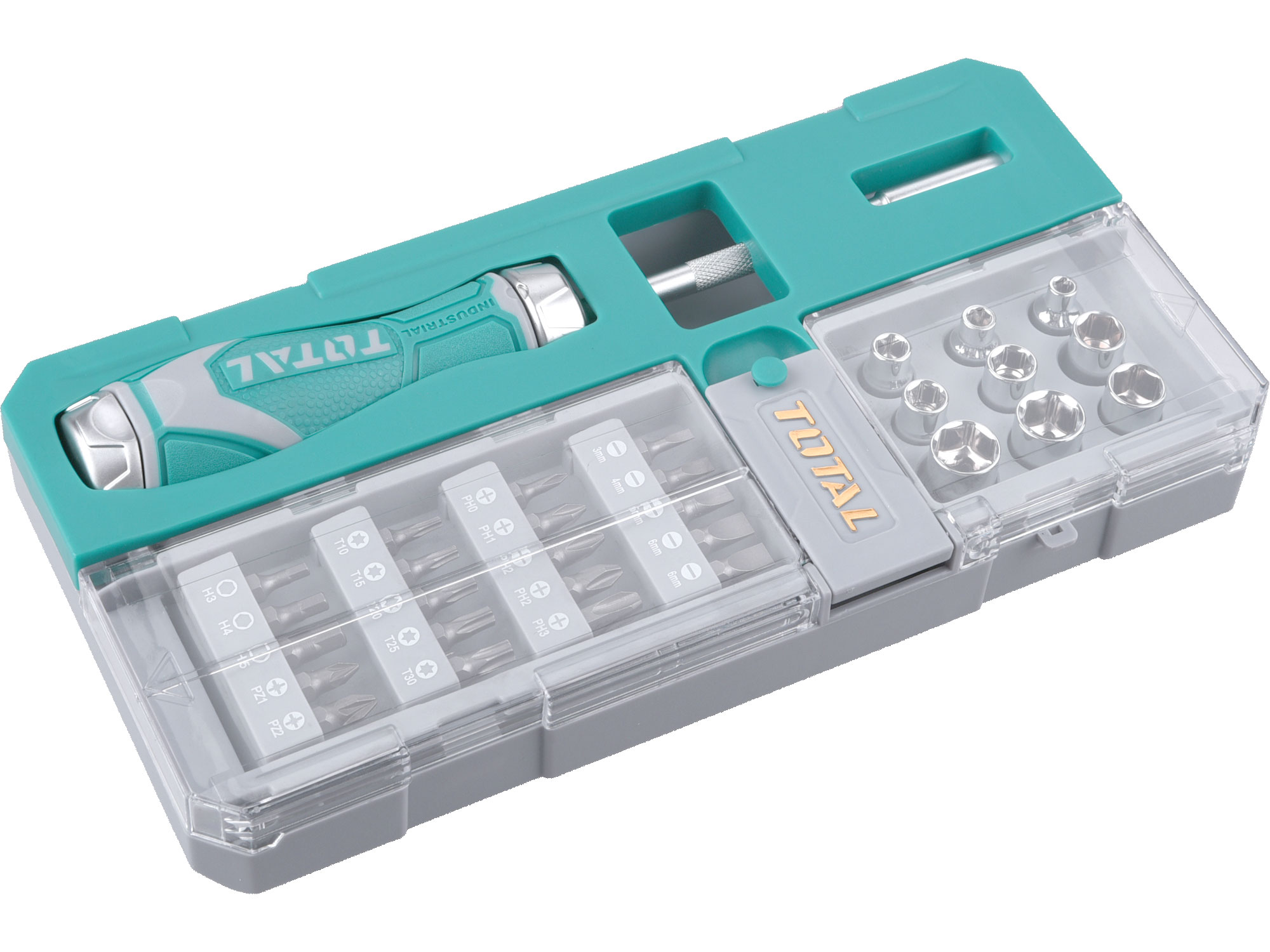 Total Tournevis à cliquet avec écrous et pointes, jeu de 33 pièces, industrie