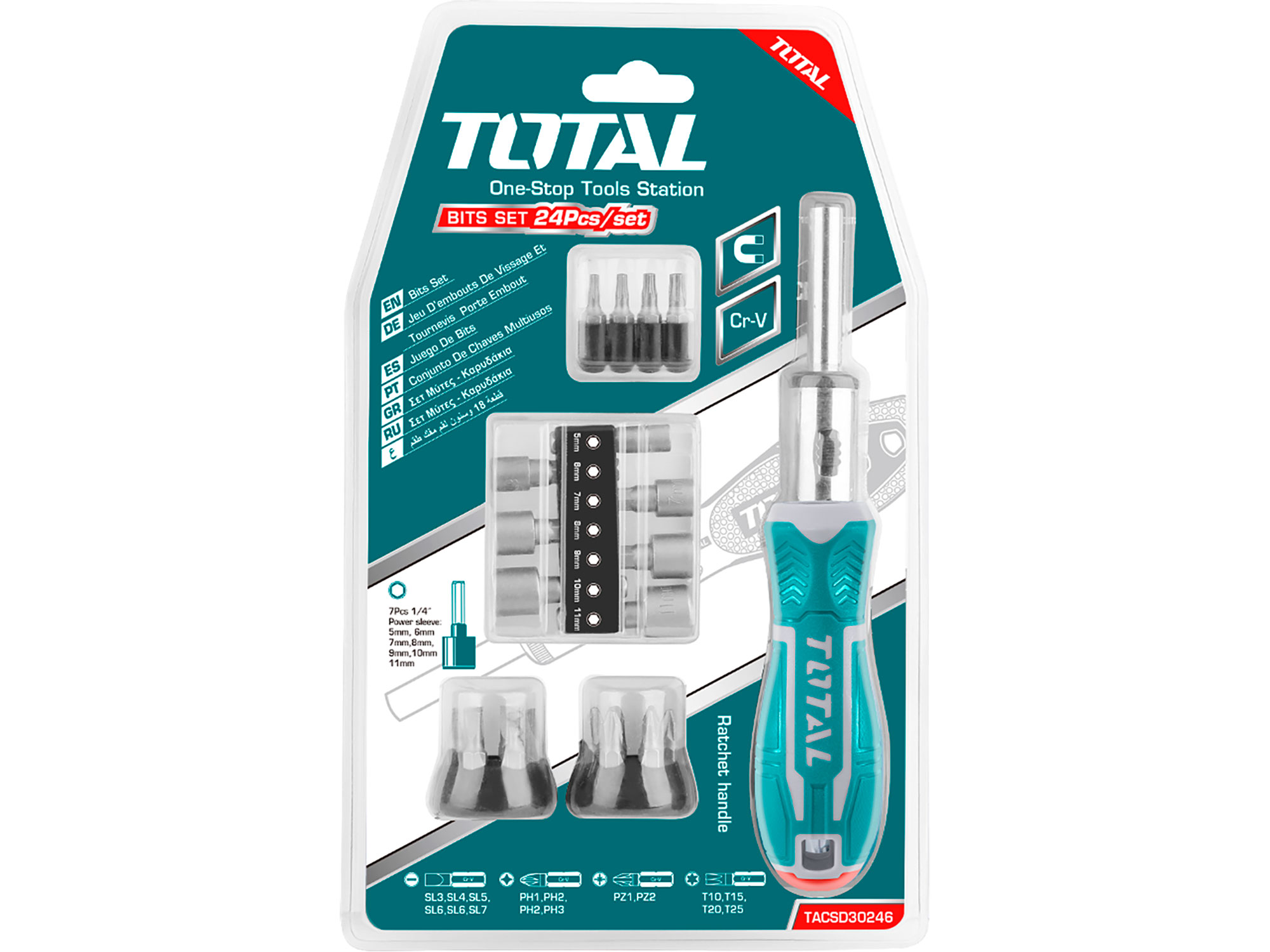 Total Tournevis à cliquet avec pointes, jeu de 24 pièces